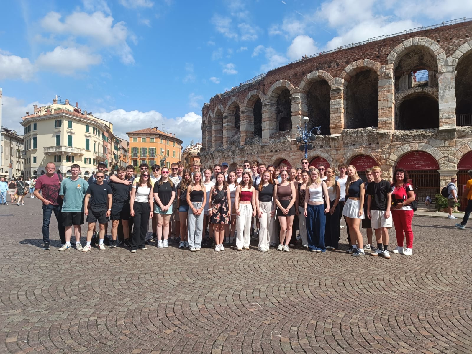 Die erste Stadt, Verona, beeindruckte stark mit ihrer antiken Arena, langen, bunten Gassen und italienischen Szenerie. Den darauffolgenden Tag fuhren wir mit einer Fähre nach Sirmione, wo uns eine alte Burg, schöne Gebäude, leckeres Eis und ein grandioser Rundumblick über den Gardasee erwarteten. Unser letzter voller Tag wurde dann in Riva del Garda verbracht, mit einer szenischen, sportlichen Kajaktour, einem sehenswerten Städtebau und grün bewachsenen, großen Bergen um uns herum. Das und dazu noch sehr gutes Essen, dauerhafte Sonne und ausreichende gemeinsame Freizeit machten unsere Kursfahrt zu einem wirklichen Erlebnis. Jeder Abend wurde dann noch gefüllt mit eigenen Unternehmungen und endete anschließend meist in gemeinsamen Gesprächen unter klarem Sternenhimmel bis spät in die Nacht.