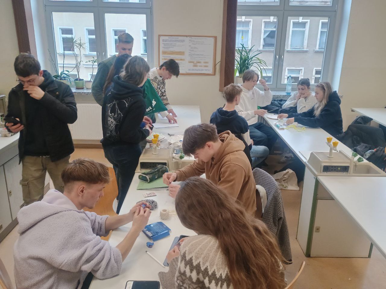 Viel Theorie, wenig Praxis? Es geht auch anders. Am 31.01.2023 ist der Biologie Leistungskurs nach Leipzig in das Schülerlabor gefahren. Nach einer kurzweiligen Zugfahrt erreichten wir das Helmholtz Zentrum für Umweltforschung in Leipzig. Dort wurden dann in einen Seminarraum geführt,in welchem uns mehr über das sich dort befindliche Forschungszentrum und den folgenden Tagesplan erklärt wurde. Wir sollten eine DNA- Isolierung und eine Gelelektrophorese (die DNA nach der Ladung und Länge auftrennen) durchführen. Dafür gingen wir dann in das Schülerlabor. Hier wurden wir Schritt für Schritt in kleinen Gruppen bei unserer Arbeit begleitet. Neben verschiedenen Früchten und Gemüsen war auch der Sellerie zum ersten Mal ein Testobjekt. Wir hatten die Möglichkeit alle Vorgänge zu probieren und zu üben. Die Heidelbeere sollte sich als besonders widerspenstig herausstellen. Dennoch konnten am Ende alle etwas gewonnene DNA in Geltaschen füllen. Nach einer Mittagspause in der Kantine konnten wir die Ergebnisse begutachten. Viele Versuche haben gut funktioniert und selbst die widerspenstige Heidelbeer-DNA war auf dem Endergebnis zu erkennen. Nach der Auswertung sind wir, mit neuen Erkenntnissen und viel Praxis ziemlich geschafft nach Hause gefahren.